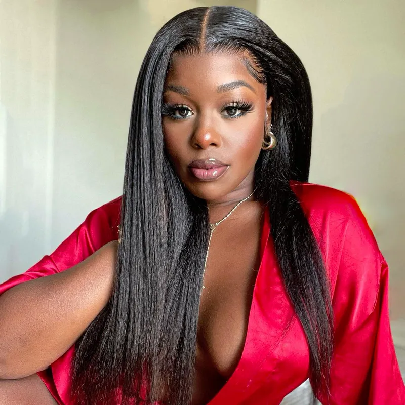 360 Lace Frontal Yaki Straight Wig Human Hair Pre Plucked Skin Lace Wig Light Yaki