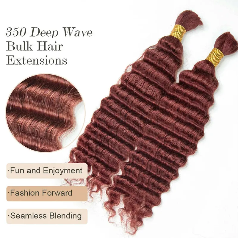 Ashimary Deep Wave Reddish Brown Bulk Human Hair For Knotless Braiding 3pcs/pack
