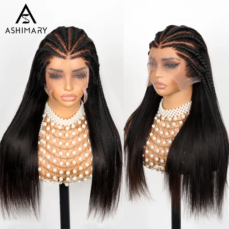 Ashimary Pull Go 13x6 Full Wig Half Braid Straight Transparent Lace Frontal Pre Bleached & Plucked Human Hair Pre Styled Glueless Wig
