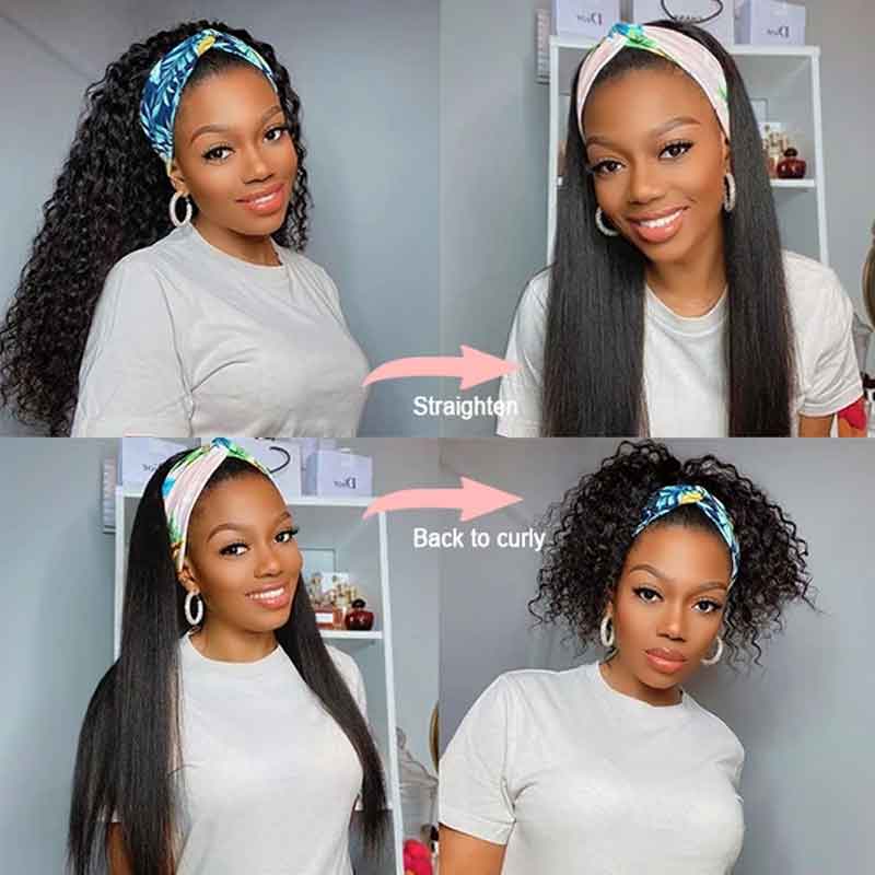 The headband juicy curly wig features premium human hair with a natural color and easy slip-on headband design for effortless, stylish wear.