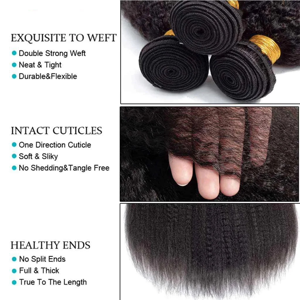 Kinky Straight Hair 3 Bundles 9A Human Hair Natural Color Remy Hair